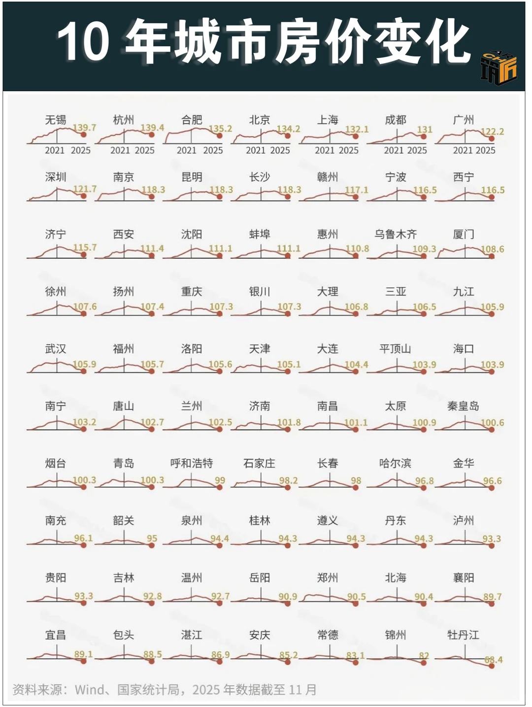 大部分城市,比较于2016年还有10%以上的跌幅,现时房价也就跟2010年差未几吧。