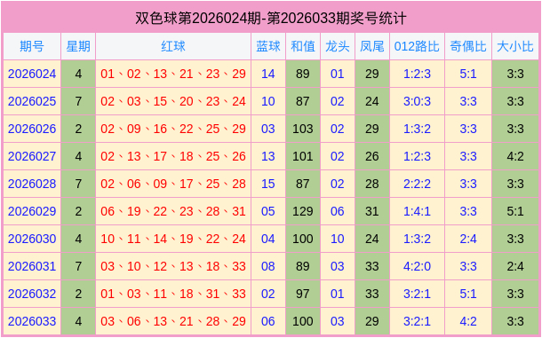 双色球2026033开奖号码为:03、06、13、21、28、29 + 06。