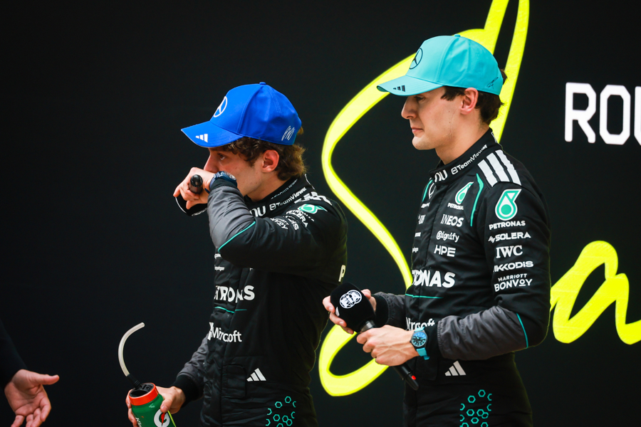 比较法拉利阵营的吵杂,安东内利的夺冠之路相对沉静。这位意大利小将在起步被非常后连忙夺回领跑位置,尽管第53圈曾冲出赛说念,但凭借厚实的节拍最终简短夺冠。