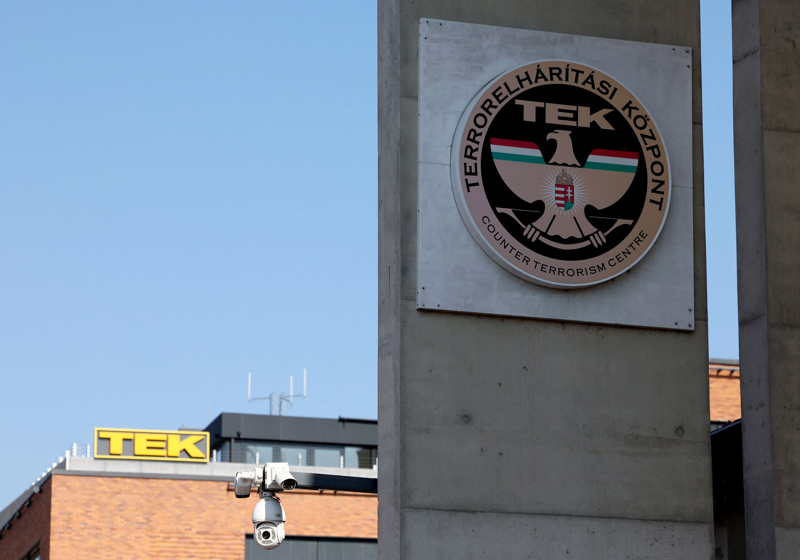 匈牙利税务部门3月6日默示,匈牙利反恐部队日前以涉嫌洗钱为由,阻扰了乌克兰一家国有银行的两辆运钞车。这是3月6日在匈牙利都门布达佩斯拍摄的匈牙利反恐中心象征。