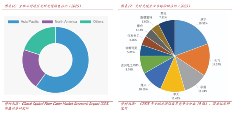 中国事大师最大、产业链最无缺的光纤光缆坐褥国,2025 年中国光纤出货量达3.72亿芯公里,同比增长7.5%,占大师总出货量的 56.3%,大师供应链主导地位捏续强化。