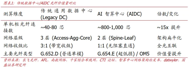大师智算中心诱骗的爆发,已成为光通讯需求爆发的中枢引擎。与传统数据中心以CPU计较、存储和对外劳动流量为主不同,AI智算中心需承载高密度GPU集群的协同计较,数千张GPU卡需在推行任务中及时、高频交换海量数据(如模子参数、梯度)。这导致其里面收罗架构(如InfiniBand或RoCE以太网)止境复杂和密集,国盛证券测算,单机柜的光纤糜费量达到传统机房的5-10倍。