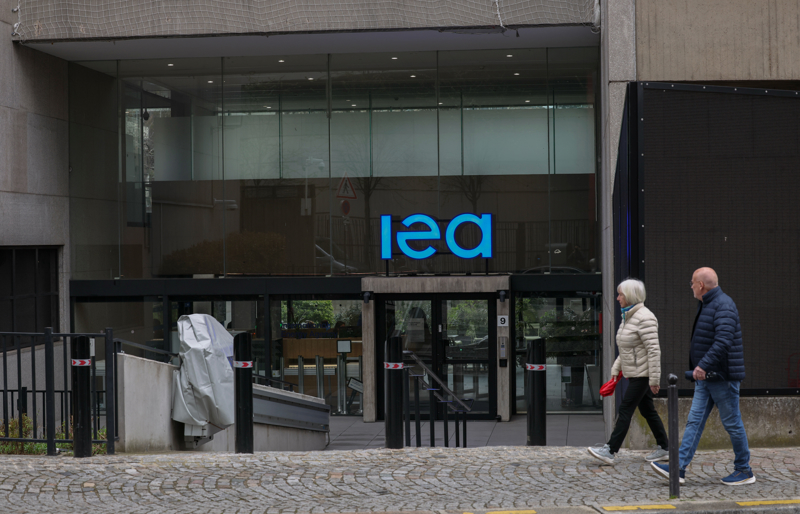 3月13日,在法国巴黎,行东谈主过程国外动力署总部进口。